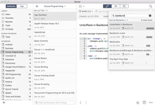 Quiver是另一个类似上面两个的应用程序:使用者可以针对嵌入代码进行混合和匹配文本(Markdown和LaTeX格式)功能。但Quiver内有个代码专用的编辑器,比其他竞品更简洁,速度更快。