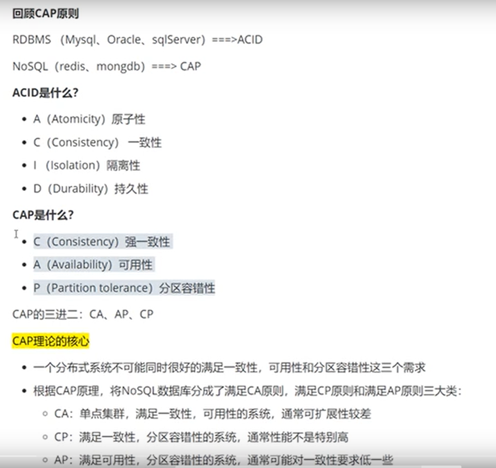 我们平常使用的关系型数据库RDBMS(Mysql、Oracle、SqlServer)等都是采用的ACID原则(A:原子性、C:一致性、I:隔离性、D:持久性),但是非关系型数据库NoSql(redis、mongdb)等都是采用了CAP原则(c:强一致性、A:可用性、P:分区容错性)