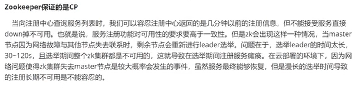 当向注册中心查询服务列表时,我们可以容忍注册中心返回的是几分钟以前的注册信息,但不能接受服务直接down掉,总的来说,服务注册功能对可用性的要求比一致性高。