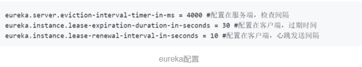 client每隔一定时间,向server发送一个心跳(请求)。 server每隔一段时间,检查所有client的心跳信息,当发现某个client长时间没有心跳,则认为该client下线。 client再次上线后,会再次向server发送心跳。 eureka里,client发送心跳的间隔时间默认为30秒,某client如果90秒内都没有心跳,则会被认为宕机。server默认每隔1分钟检查一次所有client的心跳信息。