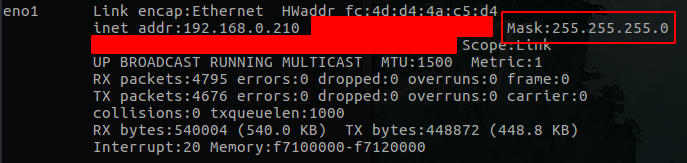 启动终端,「ifconfig」查看下掩码: