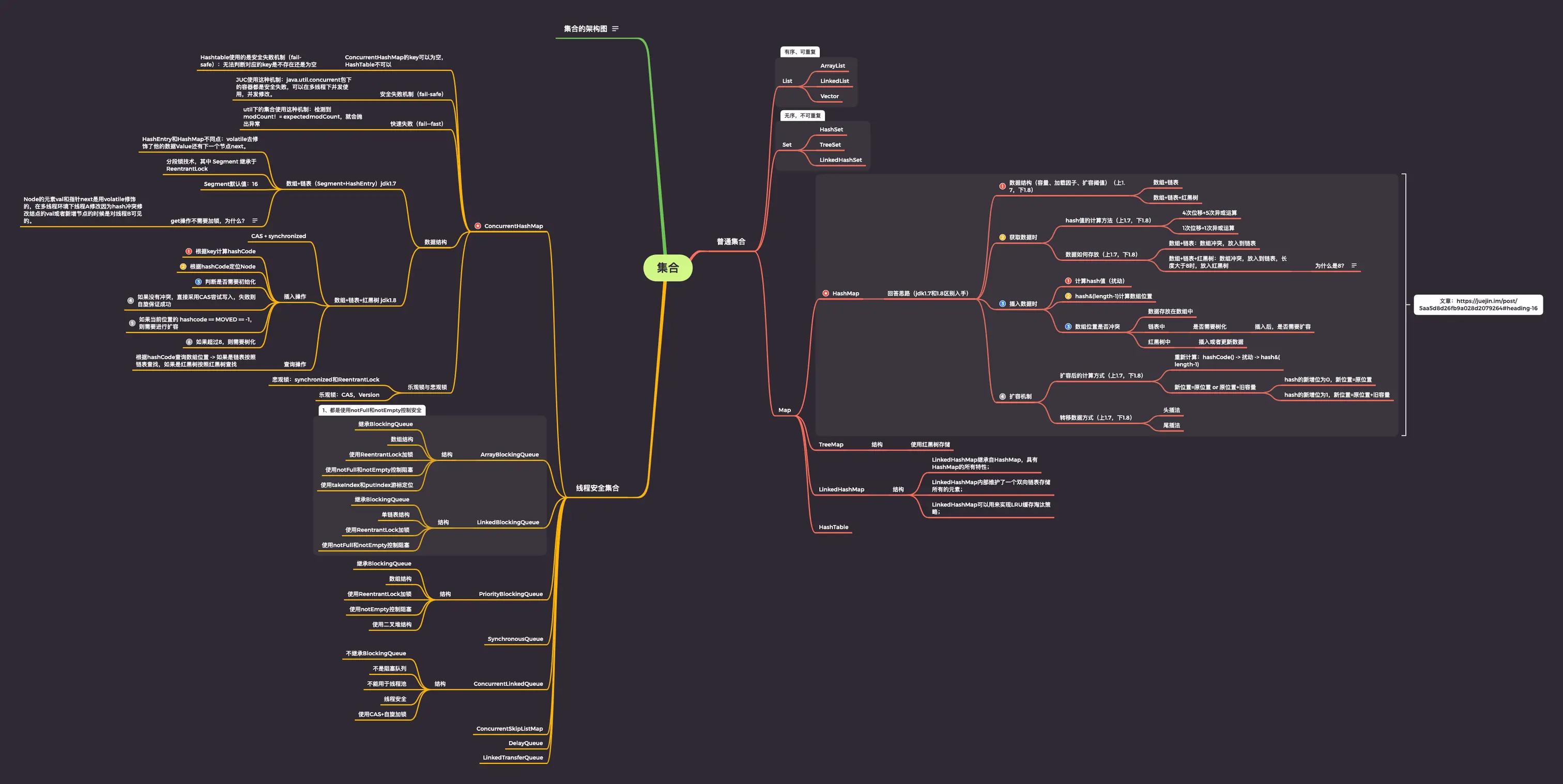这个的话,是我在面试当中觉得集合这方面确实在面试当中问得非常多,你在每一次面试的过程当中,你基本上都会遇到集合相关的面试问题,比如说list,set这两个最基本集合就不用说了,基本上会问到。另外一个问的最多的可以说就是HashMap了。HashMap在面试当中问的特别多,不管哪个大厂,他基本都会问你HashMap,有一些变态的问题,还甚至会让你去实现一个HashMap,就在面试过程中让你去自己实现一个HashMap,或者你讲一下你怎么去实现一个HashMap,其实这个问题还是比较难的,如果你对于整个HashMap不了解的话还是比较难回答的。