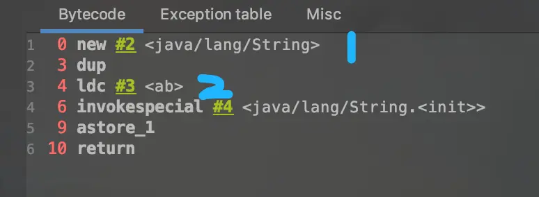 String s1 = new String("ab");//执行完以后,会在字符串常量池中会生成"ab"