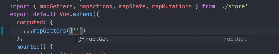 能看到mapGetters中有rootGet这一个rootGetters, 而且在使用时还能推导出其类型