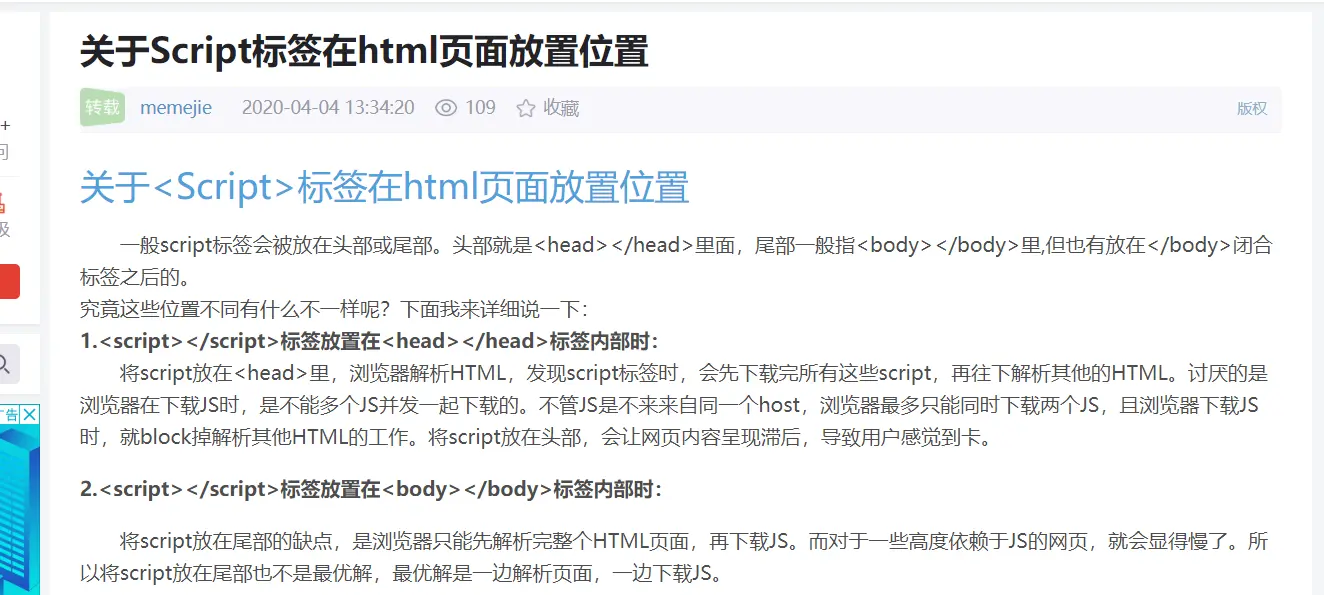 关于script标签摆放位置的问题 MrLiAng105105 2020-06-16 295 阅读1分钟 一、 blog.csdn.net/memejie/art… 转自memejie 二、 www.jianshu.com/p/510d81a8a… 三、 www.gqz666.cn/article/105…