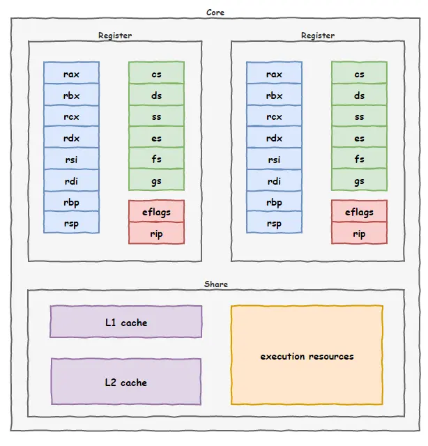 领导满意的笑了一下:“这才是你们该问的问题嘛!每个车间回去重新分配一下工作,划分为两套班子,各自维护一套寄存器,对外宣称你们是两个不同的物理核心