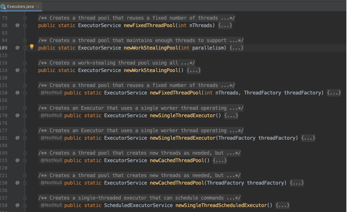 我们知道Doug Lea提供了一个工具类Executors,让我们简单方便的构造线程池,如下图所示:
