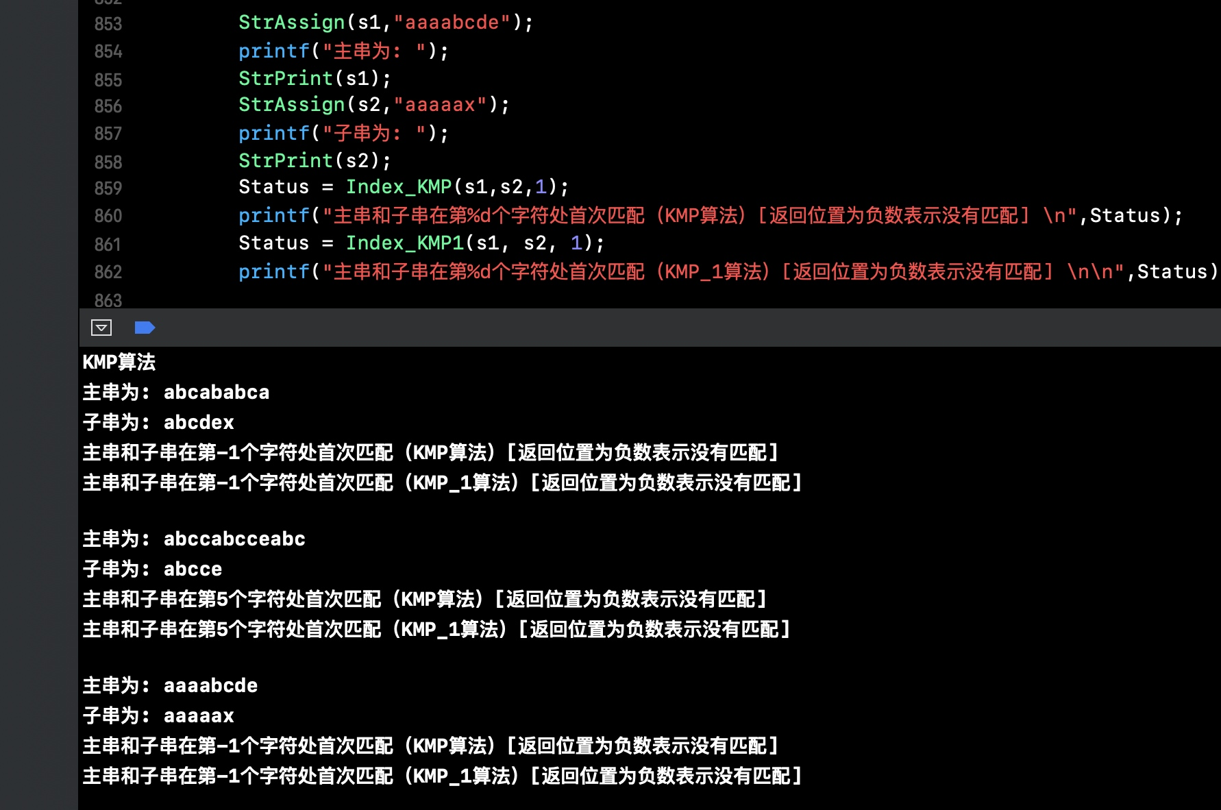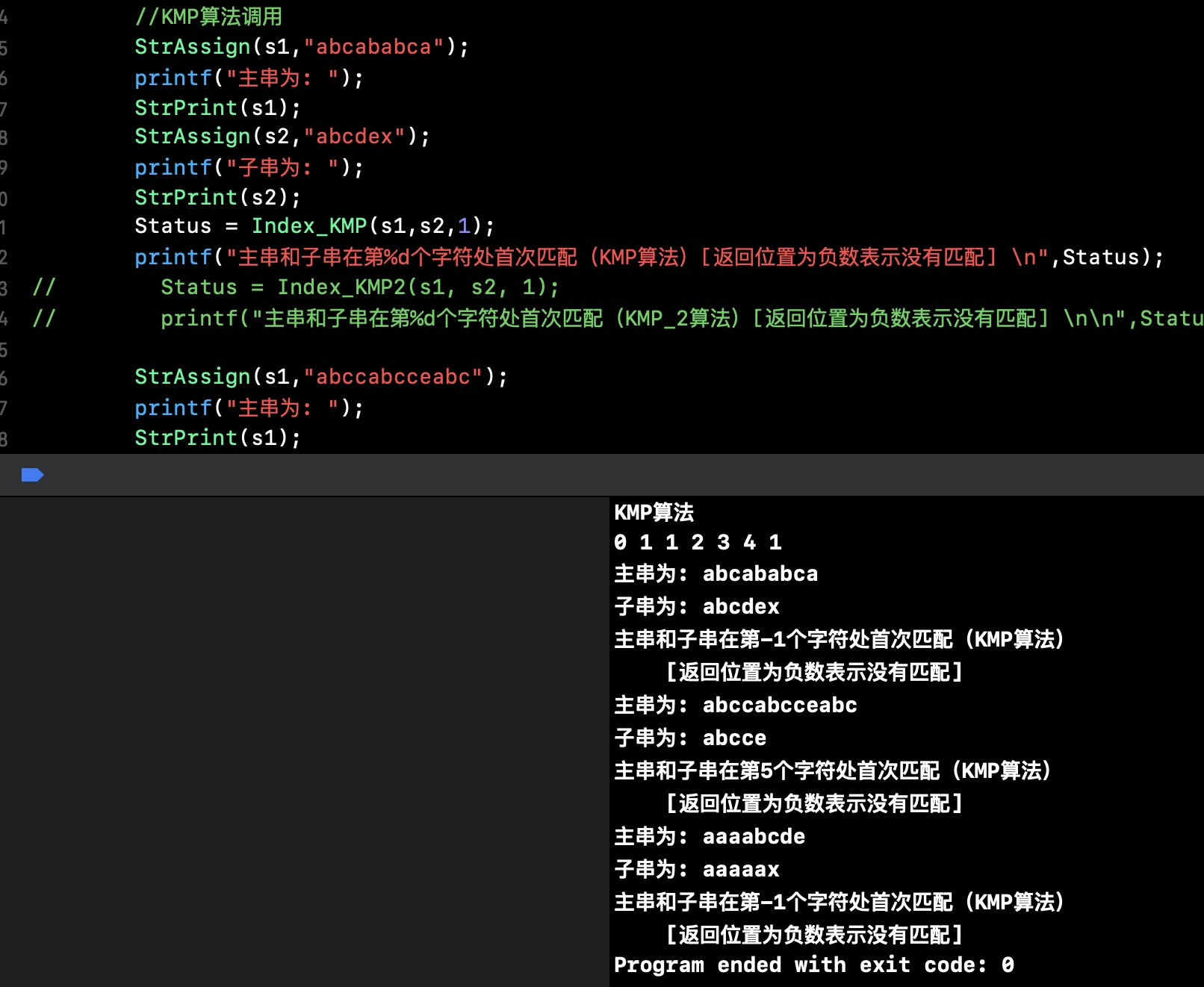 //注意字符串T[0]中是存储的字符串长度; 真正的字符内容从T[1]开始;
