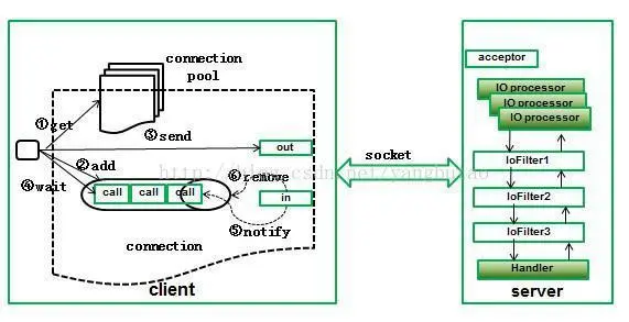 每个连接对于接收响应来说都以单独的线程运行,客户端可以通过同步(wait,notify)方式或者异步进行rpc调用,