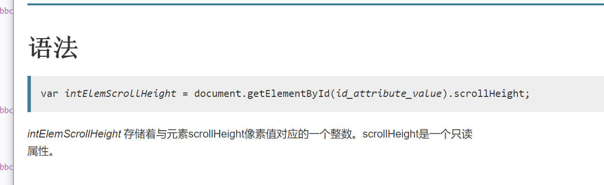 offsetHeight clientHeight scrollHeight MrLiAng105105 2020-06-16 227 阅读1分钟 1、 offsetHeight 包括元素的边框、内边距和元素的水平滚动条 2、 clientHeight 3、 scrollHeight developer.mozilla.org/zh-CN/docs/… 4、