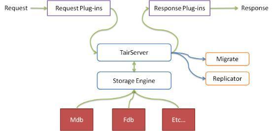 Tair的存储引擎有一个抽象层,只要满足存储引擎需要的接口,便可以很方便地替换Tair底层的存储引擎。比如你可以很方便地将bdb、tc甚至MySQL作为Tair的存储引擎,而同时使用Tair的分布方式、同步等特性。