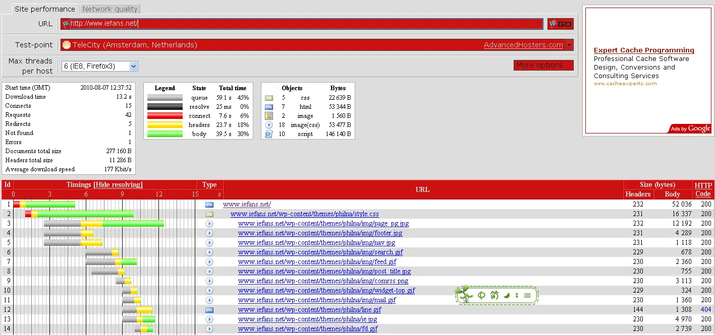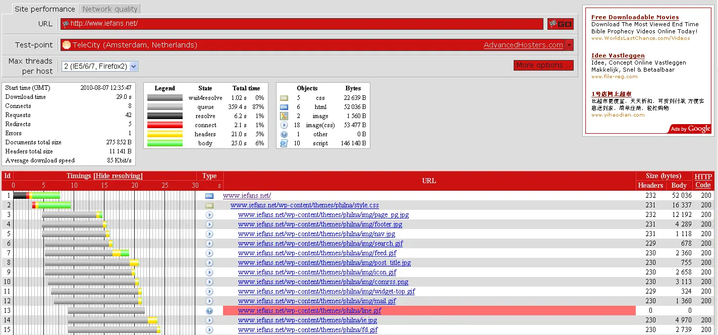 以www.iefans.net为例,分别使用2个并发数和6个并发数进行测试,结果如下: