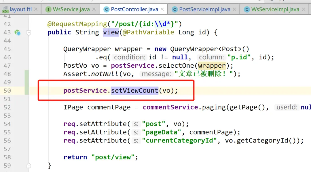 - com.example.service.impl.PostServiceImpl#setViewCount