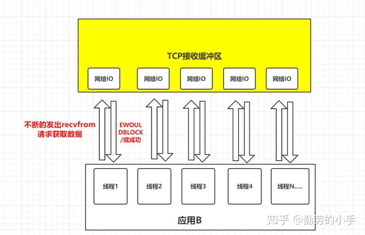 描述:在应用调用recvfrom读取数据时,如果没有数据,就会直接返回一个ewouldblock错误,不会阻塞在等待数据的第二阶段。同时,意味着应用要读取数据就需要不断的调用recvfrom请求,直到读取到数据为止。