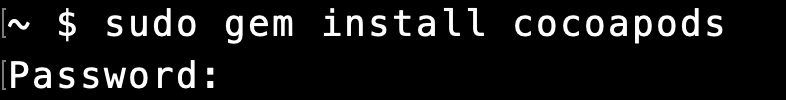 执行如下命令,输入Mac登录密码: sudo gem install cocoapods