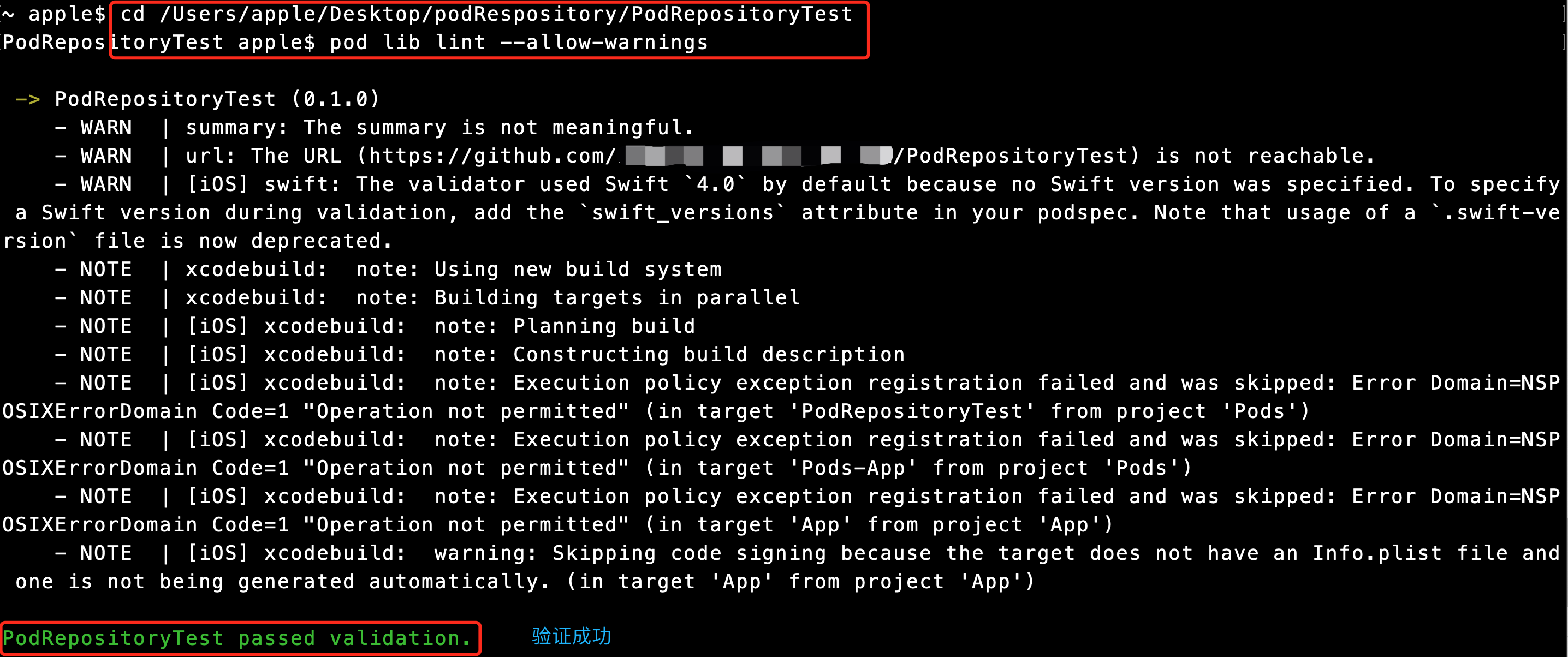 为了保证项目正确性,pod文件配置没问题,在提交之前,我们需要验证一下:
