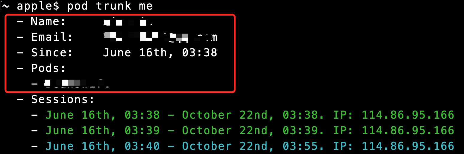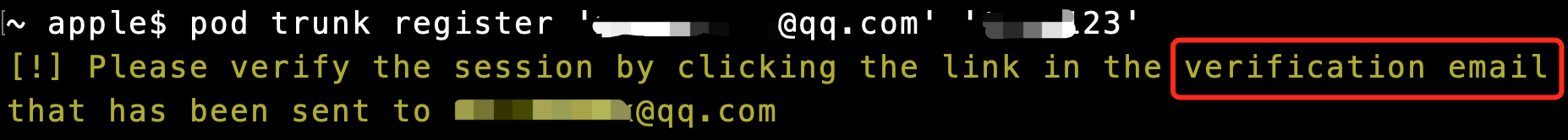 验证成功后,执行pod trunk me,返回步骤1的结果就证明注册成功。(我当时注册的时候,一直没有看到有新邮件,后来才发现在垃圾邮件里)