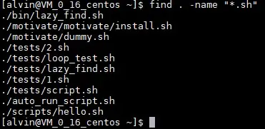 所以,这里就偷个懒,介绍最基本的,根据文件名查找文件的方法。假如我们想搜索当前目录(及其子目录)下所有 .sh 文件,可以这样搜索: