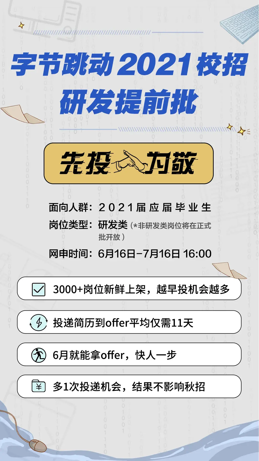 【字节跳动 2021 秋招提前批正式开启,部门客户端专属岗 && 研发岗内推码来了!】