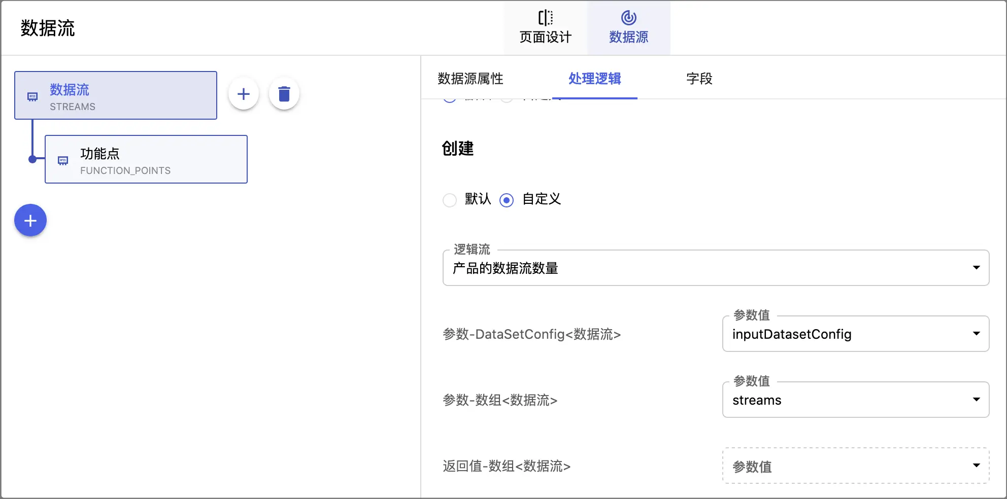 1. 切换到数据流页面的数据源->处理逻辑 :