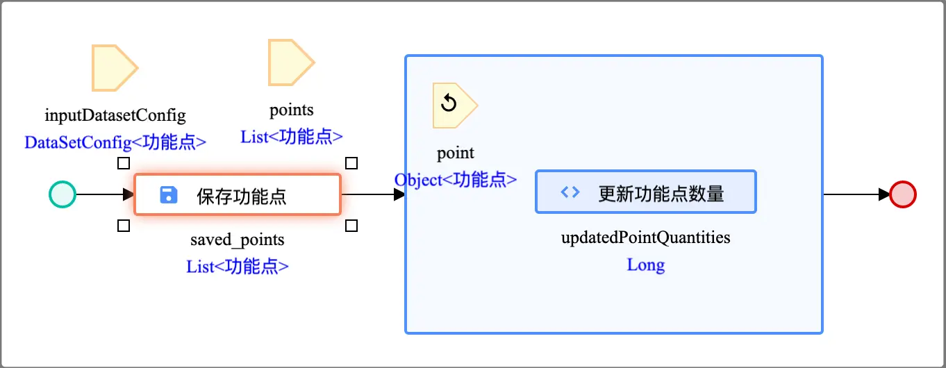 5. 从右侧流程组件下选择常规操作 -> 循环拖动到中间设计区域的流程线中 保存数据流 节点后: