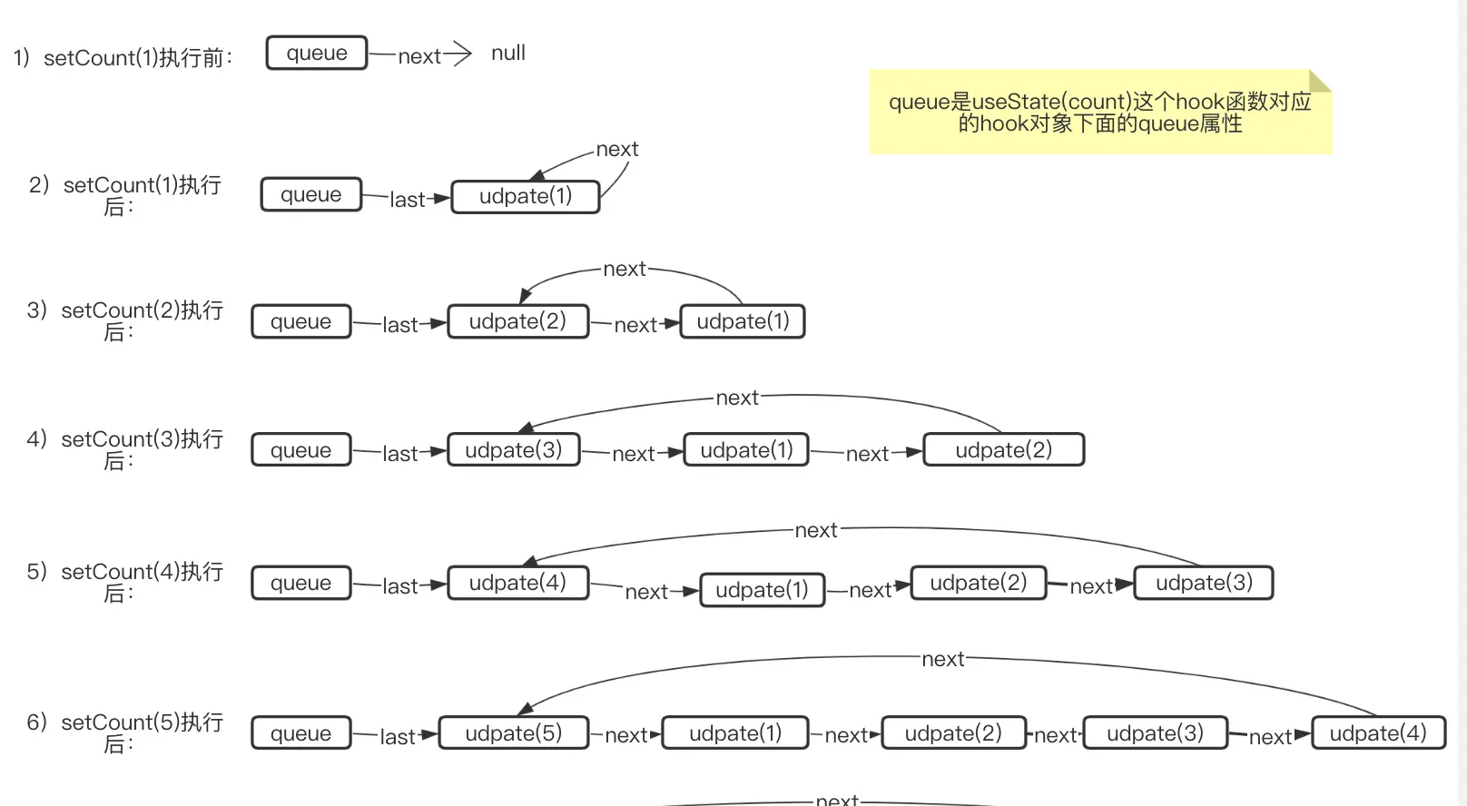 实际上,在组件被mount的时候,每调用一个hook方法(不单是useState,而是每一个React提供的hook方法),react都会帮我们生成一个的hook对象保存对应的信息,这就保证在函数组件生命周期内状态不会丢失。