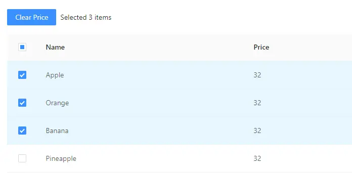 selectedRows.forEach(rowId => data[rowId].price = 0);