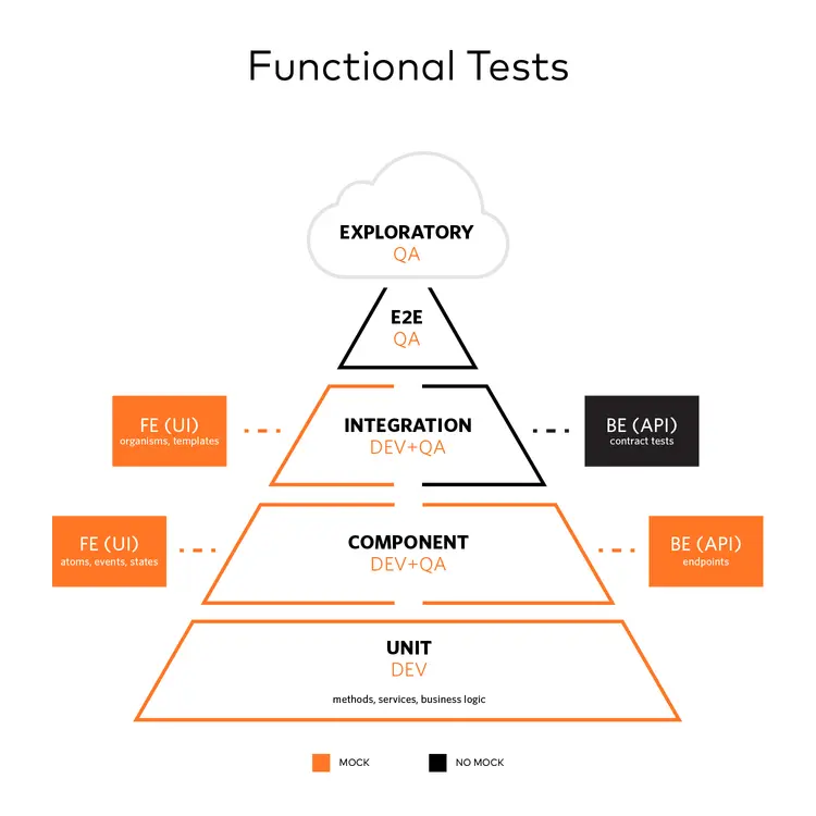 不知道大家是否熟悉上图中的测试金字塔,简单来说我们可以根据测试所涉及的范围来将测试类型划分为这些等级,最底层的是粒度最小的单元测试,最顶层的端到端的应用级测试。我在Google搜索测试金字塔的时候不同图片会有少许差异,但总的来说和我上面的描述大致相似。