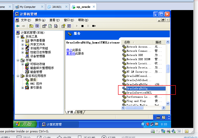 2.3 重启虚拟机中Oracle的两个服务: