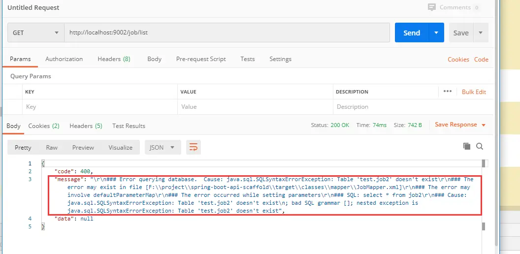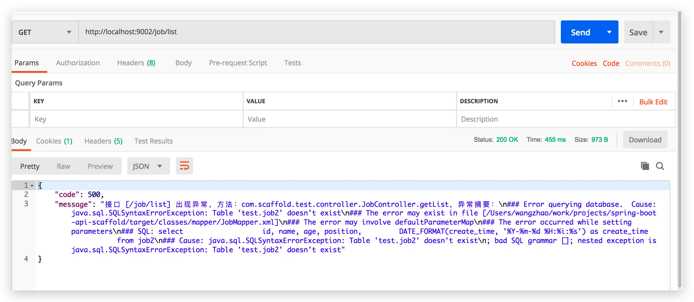 3、内部代码异常:比如 mysql 查询表名错误