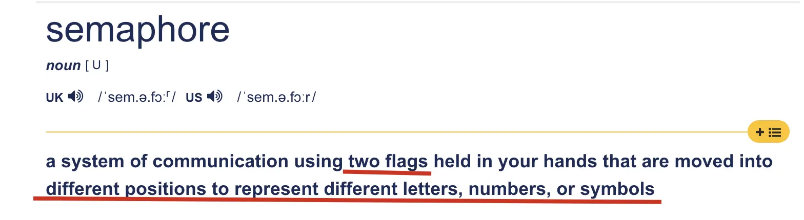 Semaphore 中文多翻译为 【信号量】,我还特意查了一下剑桥辞典的英文解释: