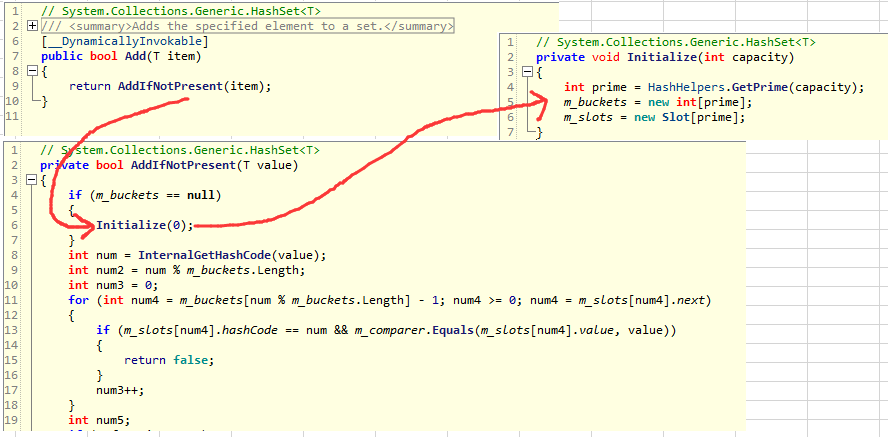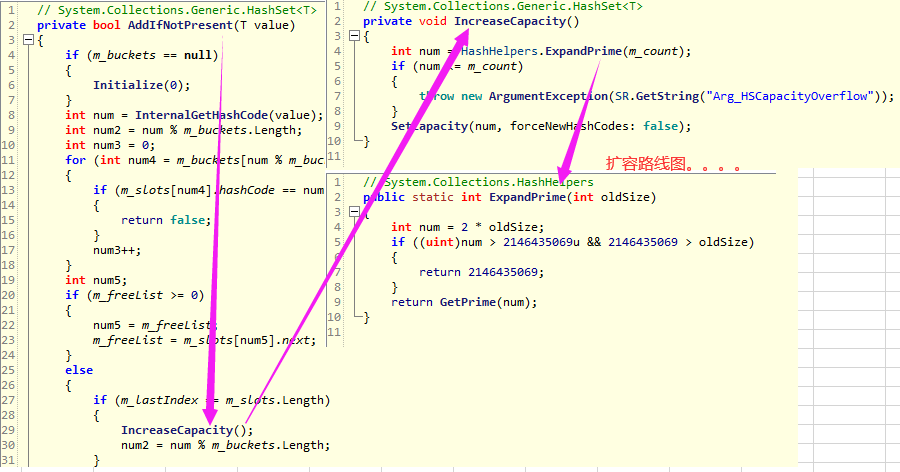 了解如何扩容,最好的办法就是翻看HashSet底层源码,最粗暴的入口点就是 HashSet.Add 方法。