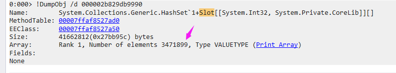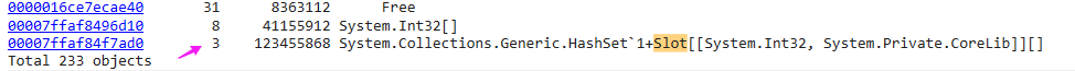 00007ffaf84f7ad0 3 123455868 System.Collections.Generic.HashSet`1+Slot[[System.Int32, System.Private.CoreLib]][]