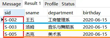 INSERT INTO students VALUES (1002, '汤姆', '音乐与舞蹈系', '2020-06-16');