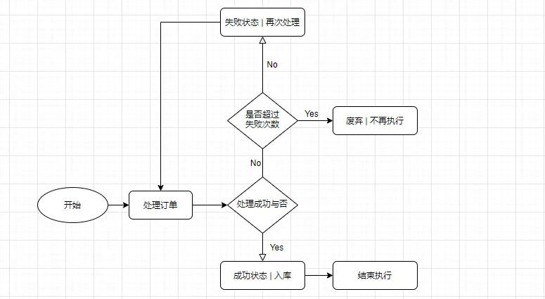 - 失败则进入失败状态,检测是否重新执行,扭转状态为处理订单