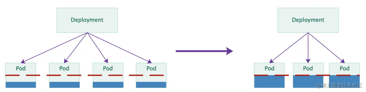 由于 TCE 上接管的服务数量非常众多,所以集群的规模也相应变得非常庞大,截止到目前为止,TCE 已经部署在中国、新加坡、美东等三个区域,底层搭建和托管的 K8S 集群数量超过了 40 个,总计包括约几十万台服务器资源;从应用规模上来说,TCE 上部署的服务数量也超过了 4w 个,对应的 Deployment 和 Pod 总量则分别超过了 30 万和 300 万个。随着业务的不断发展,集群规模还在处于不断增长的过程中。如此庞大的集群规模带来的问题就是资源成本的不断攀升,所以对于管理资源的架构团队而言,需要回答的一个核心问题就是如何才能尽可能的提高集群整体资源利用率。