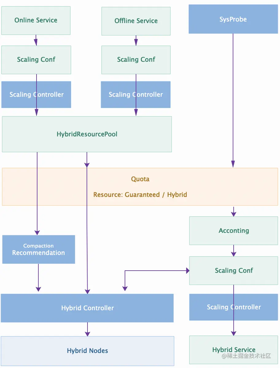 最后,我们需要有一套 Quota 系统保证业务在伸缩的过程中,集群整体的资源量是可控的,不能出现在波谷时将服务的副本数缩容后,它所对应的 Quota 被别的服务占用且无法归还的情况。