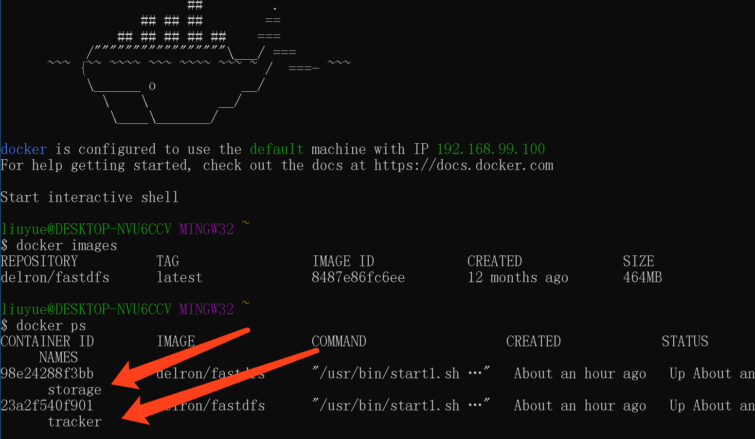 docker run -d --network=host --name storage -e TRACKER_SERVER=192.168.99.100:22122 -v /root:/var/root -e GROUP_NAME=group1 delron/fastdfs storage