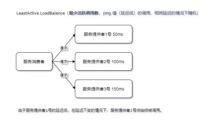 - 「最少活跃调用数」,ping 值(延迟低)的调用,相同延迟的情况下随机。
