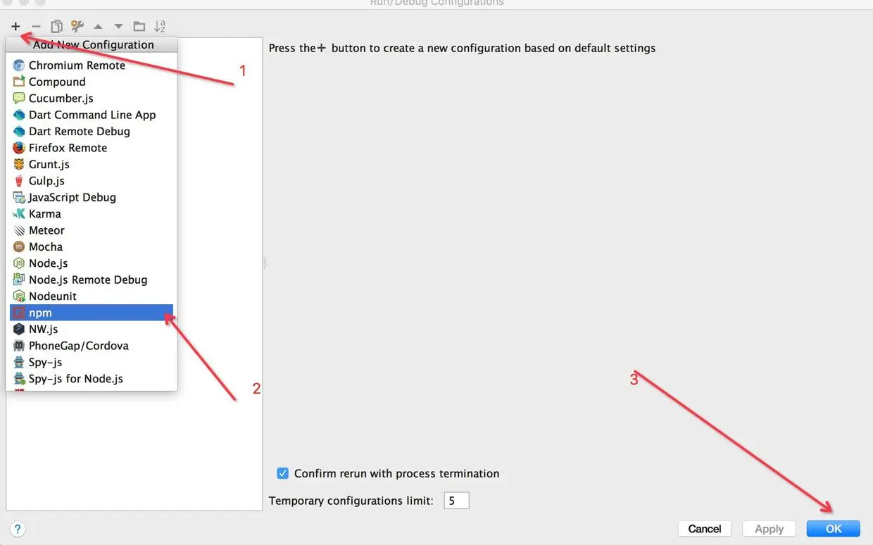注:webstorm版本要求是11.0.3,支持npm配置。