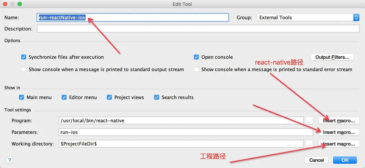 (1)先得到你的react native 的路径(/usr/local/bin/react-native)并添加