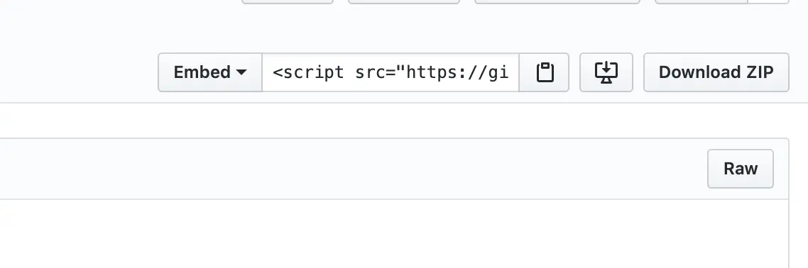 当一个粘贴创建完毕后,会显示新建立的Gist页面, 点击其中的embed(嵌入)按钮,就会显示一段用于嵌入其他网页的JavaScript代码,将上面的JavaScript代码嵌入到网页中,即可在相应的网页中嵌入来自Gist的数据,并保持语法高亮等功能。