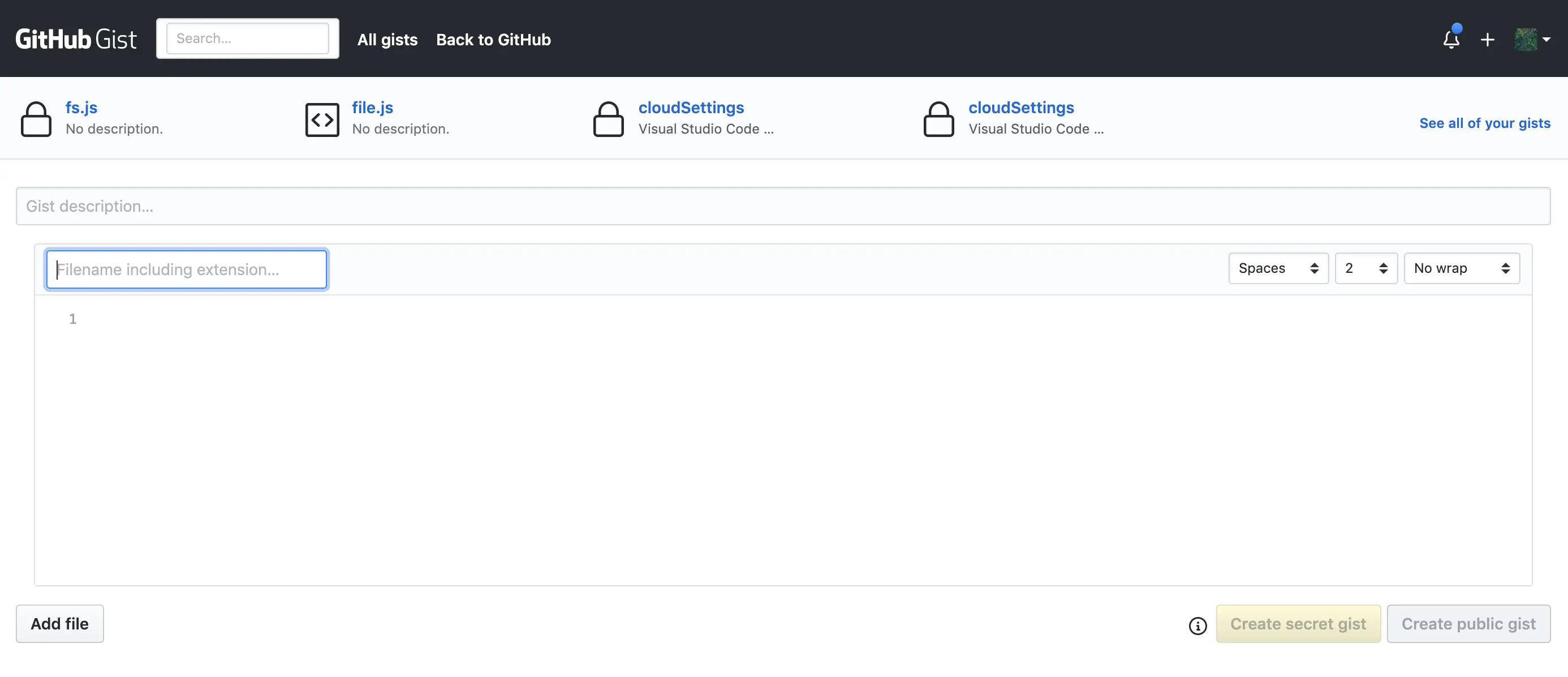 进入Gist网站的首页,就会看到一个大大的数据粘贴对话框. 只要提供一行简单的描述、文件名,并粘贴文件内容,即可创建一个新的粘贴。