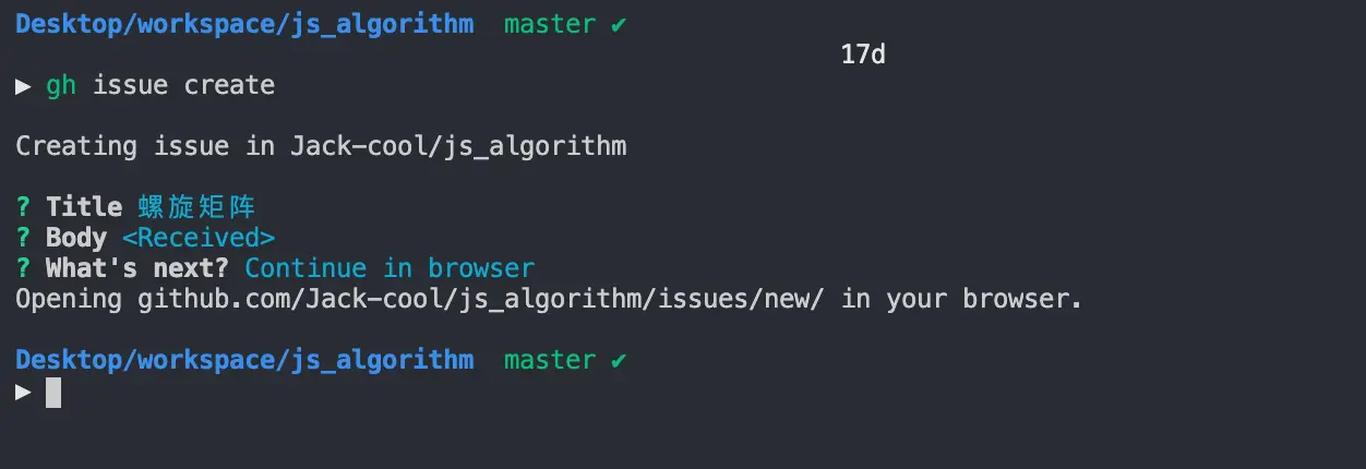 我们通过 CLI 先交互式地提交了一条issue,issue的 Body 需要通过nano编辑。