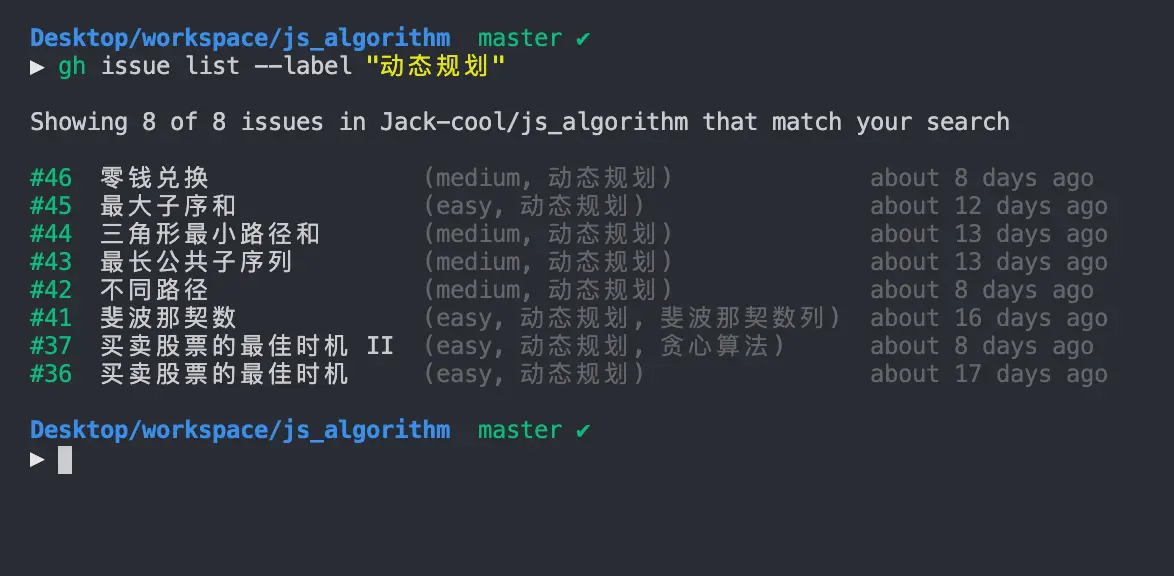 这里我只是简单介绍了issue相关的几个常用命令,更多的使用方式可以查看官方文档了解更多:https://cli.github.com/manual/examples。