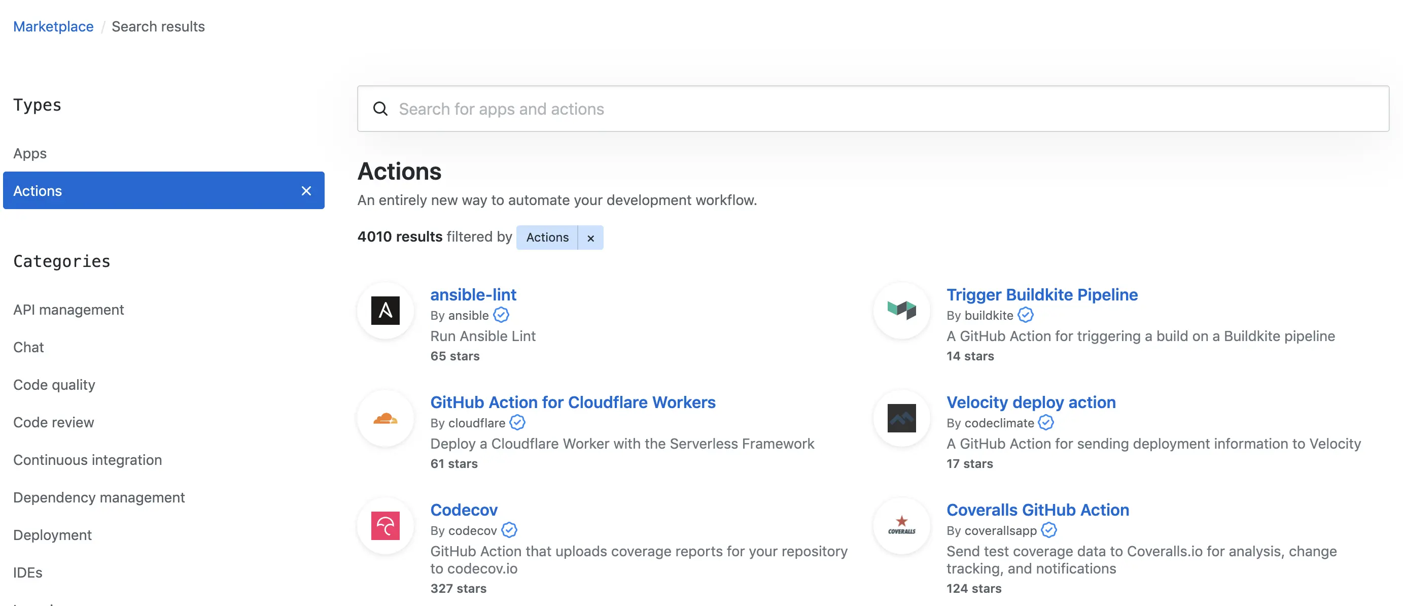 GitHub 做了一个官方市场,可以搜索到他人提交的 actions: