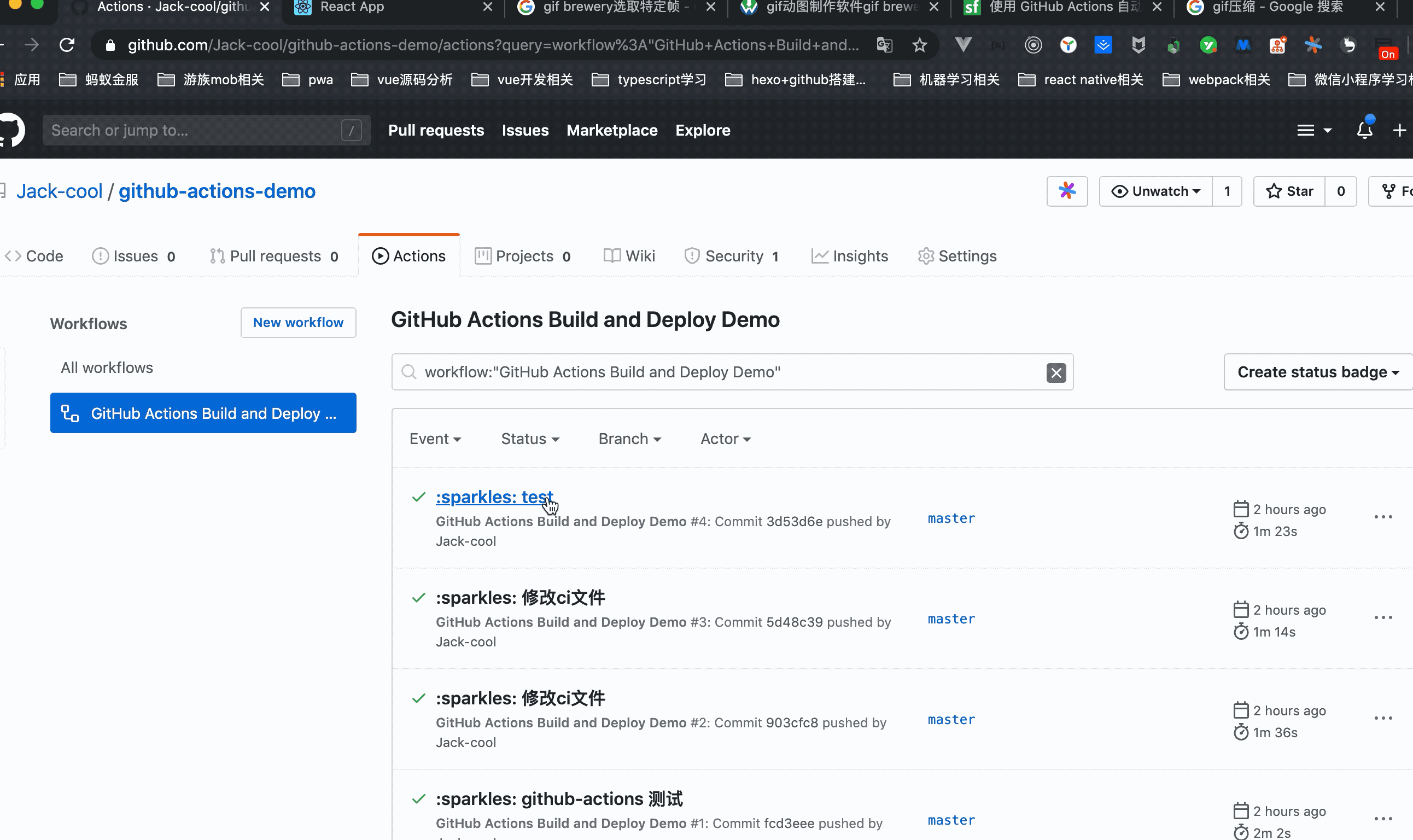这里通过 GitHub Actions 构建一个 React 项目,并发布到 GitHub Pages。最终代码都在这个仓库里面,发布后的网址为https://jack-cool.github.io/github-actions-demo/。