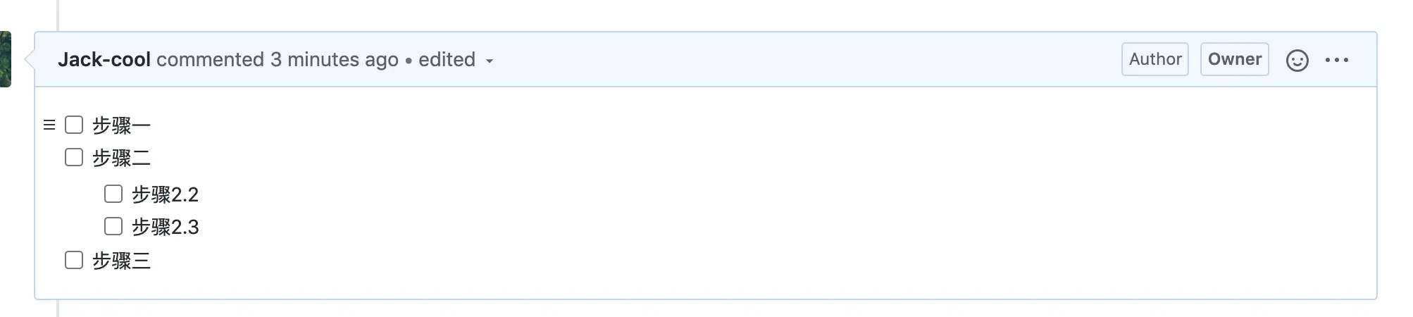 issues 和 pull requests 里可以添加复选框,语法如下(注意空白符):
