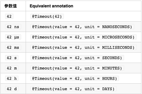 如果给一个测试方法、测试工厂方法、生命周期方法、测试模板方法添加了@Timeout注解,那么,当测试没有在指定的时间内完成时,测试将被标识为失败。默认的时间单位是秒,但可以配置为其他时间单位。