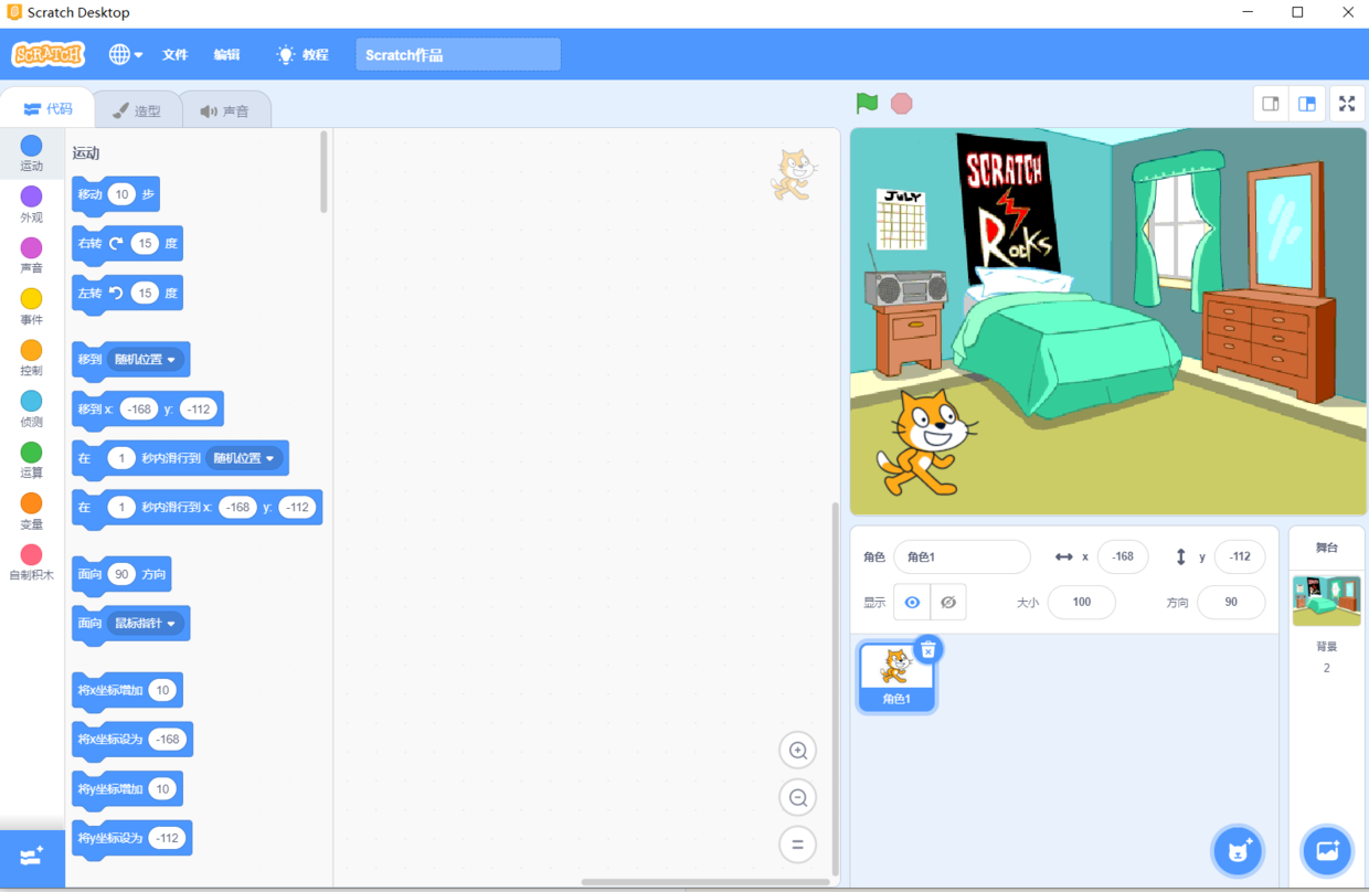 上图就是打开后的编辑器。主要的区域我都标注出来了。这一节的Scratch软件安装就讲到这里了,下一节开始,我们就来教大家属性里面的一些功能。然后家长朋友学会后,就可以在家带娃学编程了。